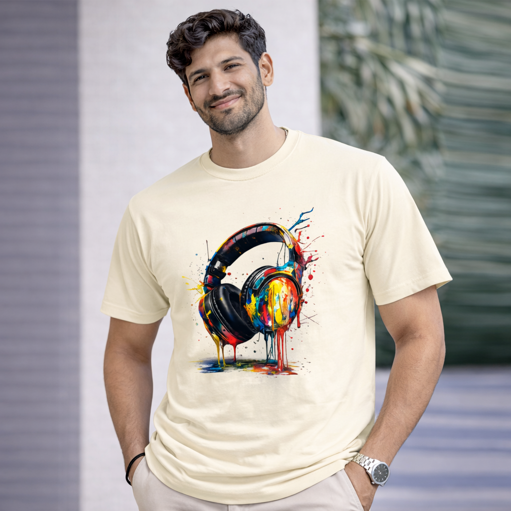 Bhokals "Head Phone Splash" Printed, Round Neck, Cotton, Super Soft T-Shirt,