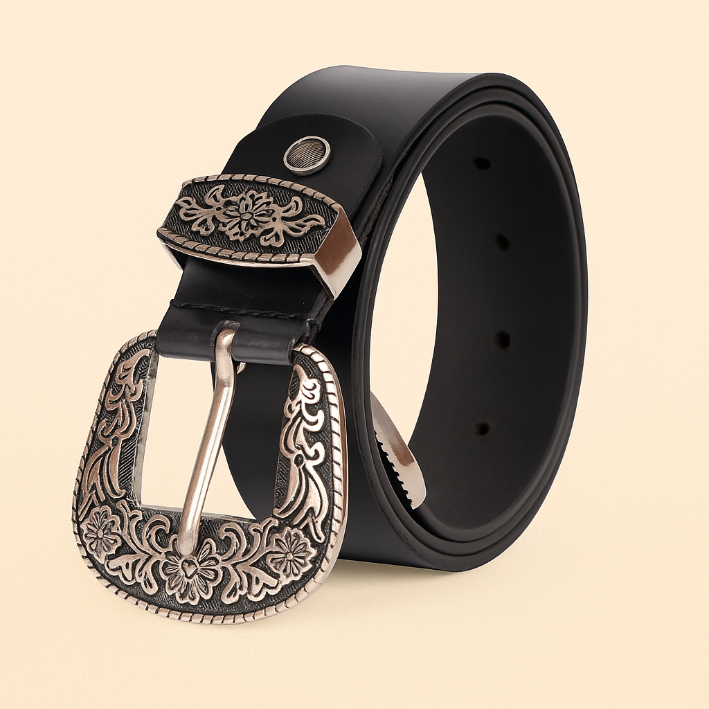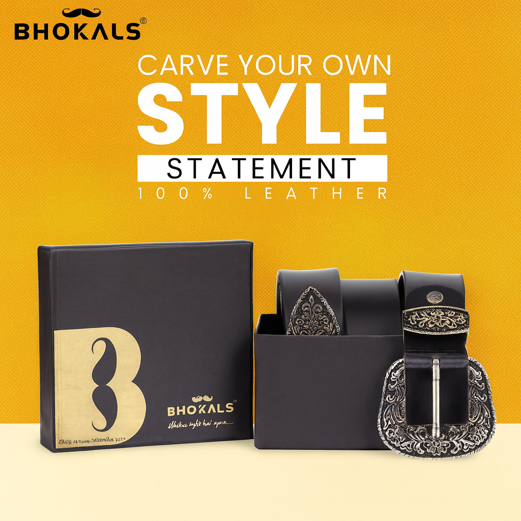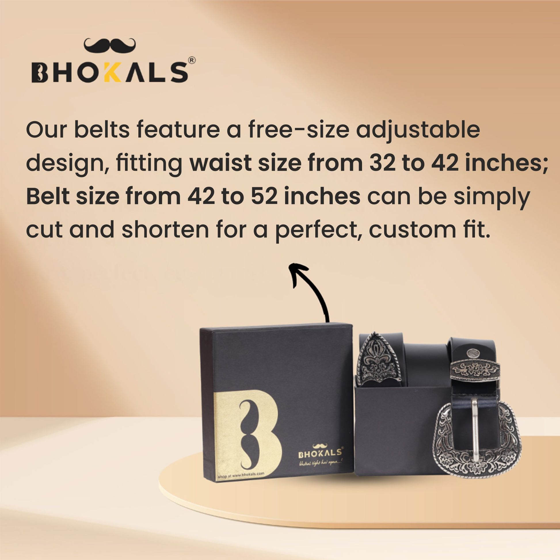 Bhokals Maharaja Men Silver Buckle Black Leather Belt
