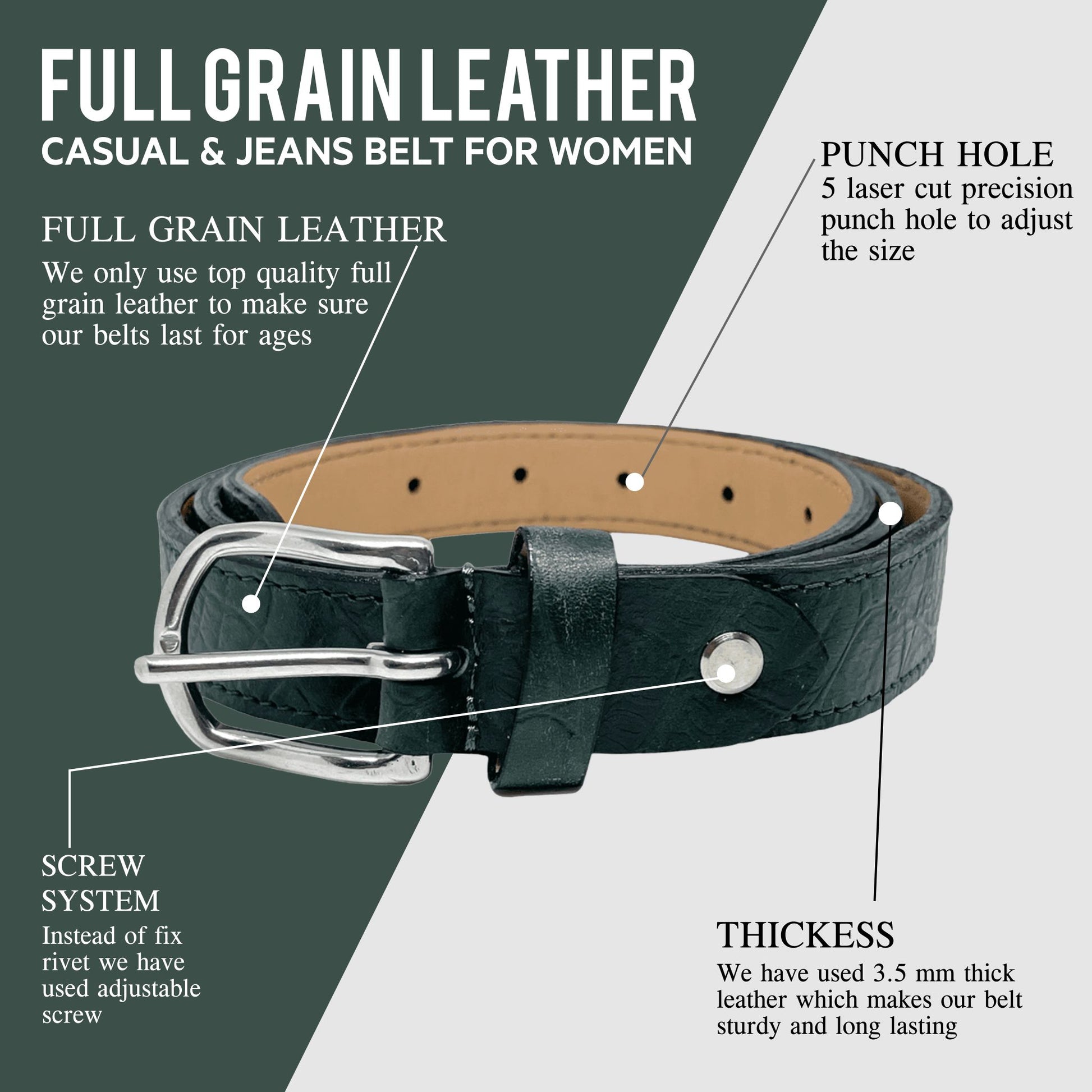 Complete The Look : Glamourize your wardrobe with this top-notch Bhokals Croc Green belt. Dress up your favourite pair of trousers with this fashion-forward and durable leather belt.