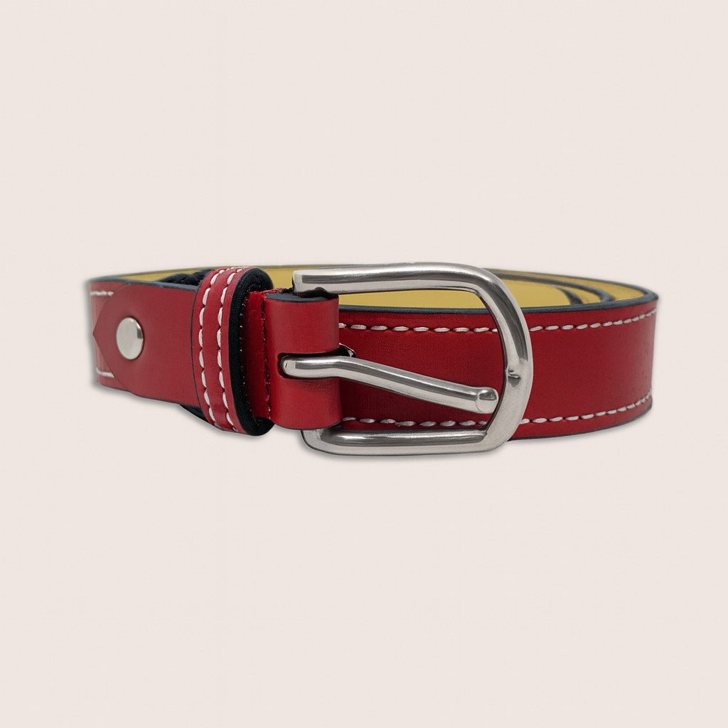 Complete The Look : Glamourize your wardrobe with this top-notch Bhokals Red belt. Dress up your favourite pair of trousers with this fashion-forward and durable leather belt.