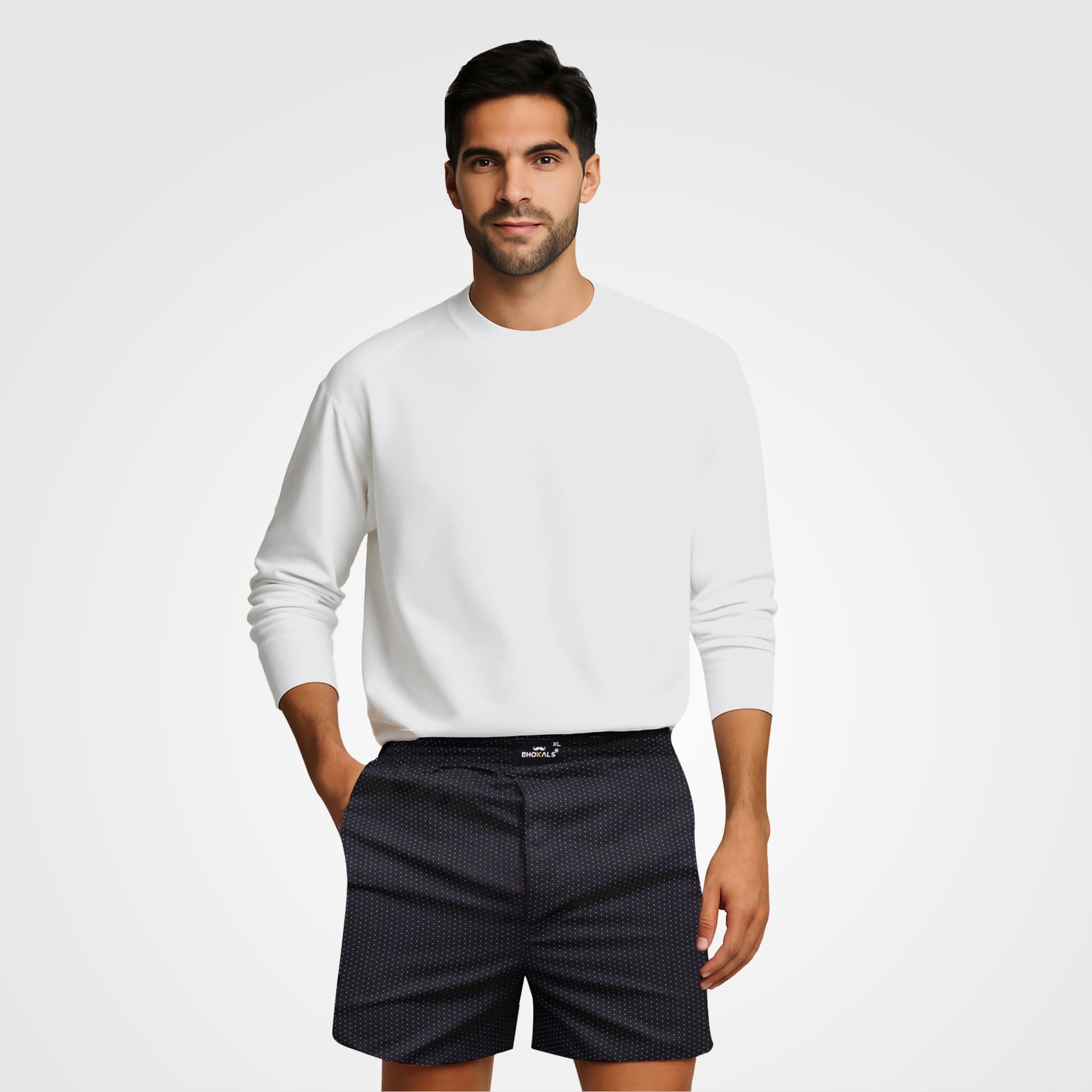 BLACK WHITE DOTTED PRINTED COTTON MEN BOXER