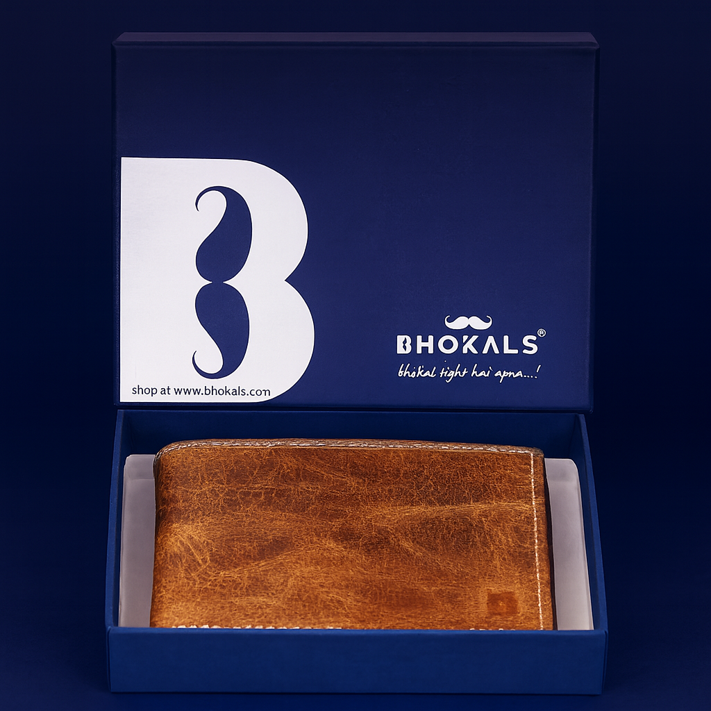 Discover timeless sophistication with this premium tan brown leather trifold wallet by Bhovals. Crafted from genuine leather, this classic wallet features a beautifully distressed finish that develops a unique patina over time, telling your personal story. The practical design includes multiple card slots for efficient organisation of your essential cards and IDs, while the spacious billfold compartment safely stores your currency. The wallet showcases expert craftsmanship with its precise contrast stitching and refined edges. Its vintage-inspired aesthetic combines perfectly with modern functionality, making it an ideal everyday carry accessory. The slim profile allows for comfortable pocket wear despite its generous storage capacity. This wallet represents the perfect blend of traditional style and practical design, suitable for both formal and casual occasions. The rich tan colour complements any style, while the durable construction ensures this wallet will be your trusted companion for years to come.